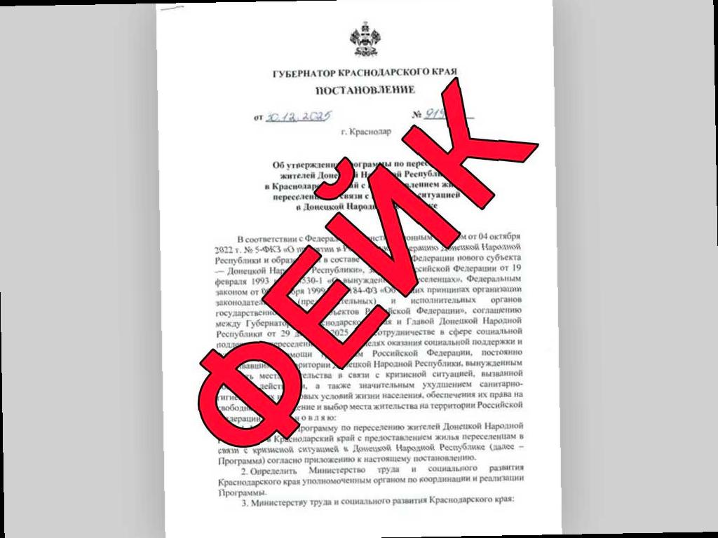 В оперативном штабе Краснодарского края появилась фейковая новость о предполагаемом переселении жителей ДНР на территорию региона. По мнению авторов этой информации, губернатор утвердил программу переселения из-за кризиса в Донецкой Народной Республике.