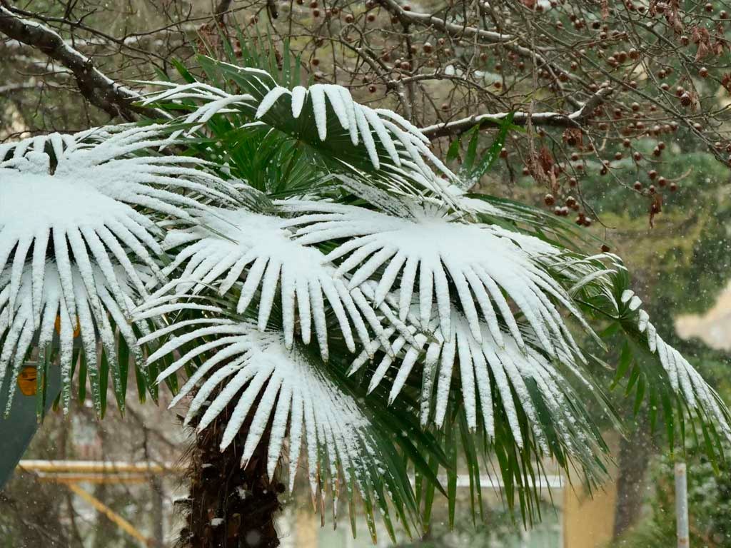 По прогнозам синоптиков, сегодня ночью и в первой половине 4 марта, налипание мокрого снега ожидается на провода и деревья в предгорьях Сочи. Возможна гололедица на дорогах.